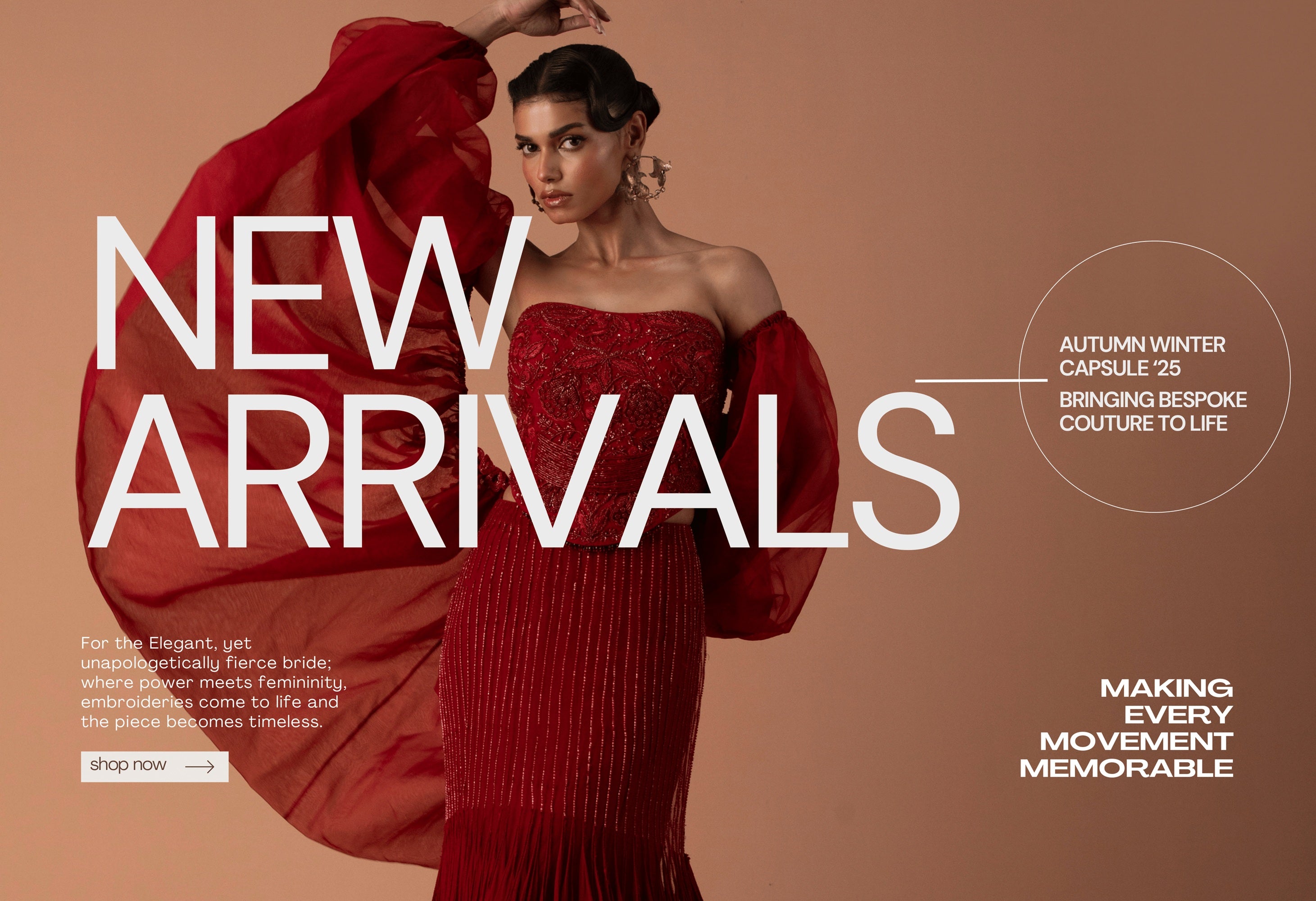 A curated universe of heirloom-inspired silhouettes for every chapter of the celebration. Whether you're the bride, a bridesmaid, or a guest of honour, discover pieces where timeless craftsmanship meets the spirit of now. Each ensemble is designed to be a modern classic — worn with ease, remembered with emotion, and passed on with pride.